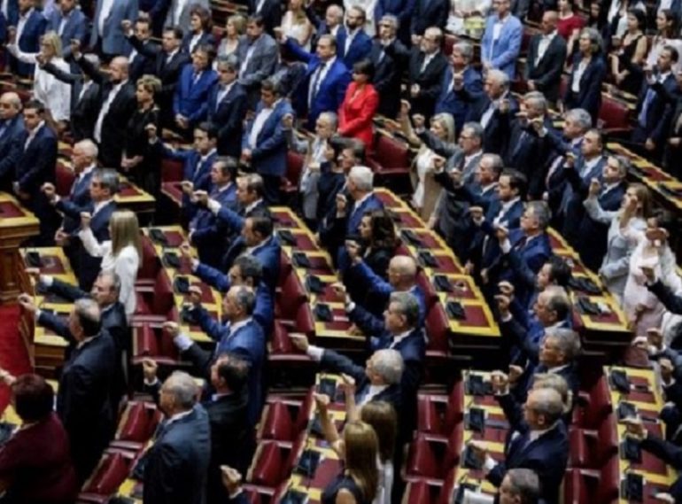 HomeΕΙΔΗΣΕΙΣΈγινε η ορκωμοσία της νέας Βουλής των Ελλήνων ΕΙΔΗΣΕΙΣ Έγινε η ορκωμοσία της νέας Βουλής των Ελλήνων Δεκατέσσερα λεπτά διήρκεσε η τελετή αγιασμού της Βουλής από τον Αρχιεπίσκοπο Αθηνών και Πάσης Ελλάδος Ιερώνυμο, που ξεκίνησε λίγο πριν τις 11:20. Ο κ. Ιερώνυμος κατά την είσοδό του στην αίθουσα της ολομέλειας, χαιρέτησε δια χειραψίας τον πρωθυπουργό Κυριάκο Μητσοτάκη. Μετά την ολοκλήρωση της τελετής ο κ. Ιερώνυμος ευχήθηκε «καλή δύναμη σε όλους και τον καθένα ξεχωριστά», ενώ αποχωρώντας είχε χειραψία με τον αντιπρόεδρο της κυβέρνησης Παναγιώτη Πικραμμένο. Μετά την ορκωμοσία των βουλευτών με θρησκευτικό όρκο της συντριπτικής πλειοψηφίας των βουλευτών της ΝΔ, του ΚΙΝΑΛ και της Ελληνικής Λύσης, ορκίστηκαν τρεις βουλευτές στο Κοράνι, ενώ ακολούθησε ο πολιτικός όρκος των βουλευτών του ΣΥΡΙΖΑ, του ΚΚΕ και του ΜεΡΑ 25. Γενικά, ήταν μία σύντομη και περιεκτική διαδικασία, όπου πλέον όλοι θα κριθούν από το έργο τους και τις τοποθετήσεις τους, ενώ αναμένεται και η εκλογή του νέου προεδρείου της Βουλής. Share This Previous ArticleΚατέκτησε το Wimbledon ο Νόβακ Τζόκοβιτς στο τέννις Next ArticleΕλεύθερος ο Αριστείδης Φλώρος της Energa 17/07/2019