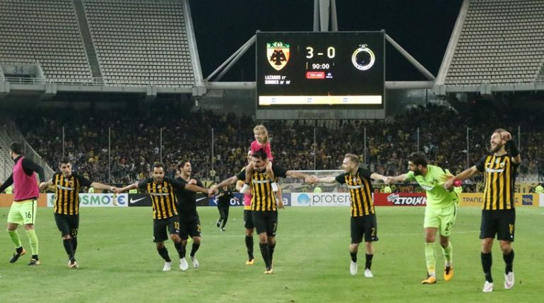 HomeΑΘΛΗΤΙΣΜΟΣΘρίαμβος για την ΑΕΚ, ήττες και αποκλεισμοί για ΠΑΟ και ΠΑΟΚ στο Europa League ΑΘΛΗΤΙΣΜΟΣ Θρίαμβος για την ΑΕΚ, ήττες και αποκλεισμοί για ΠΑΟ και ΠΑΟΚ στο Europa League Αρκετές εκπλήξεις επιφύλασσε για τους φιλάθλους η παρουσία των ομάδων μας στο Europa League για την πρόκριση στους Ομίλους. Η ΑΕΚ πιο εύκολα απ’ ό,τι αναμενόταν, παίζοντας κατά διαστήματα πολύ καλό ποδόσφαιρό, κέρδισε κατά κράτος την Μπρυζ από το Βέλγιο με 3-0 και σε συνδυασμό με το 0-0 εκτός έδρας πήρε πανηγυρική πρόκριση επιστρέφοντας μετά από 6 χρόνια στους Ομίλους της διοργάνωσης. Αντίθετα, ο ΠΑΟΚ παρόλο είχε το πάνω χέρι με το 3-1 της Τούμπας επί της Έστερσουντ, δεν στάθηκε όπως θα έπρεπε και τελικά η Σουηδική ομάδα επικράτησε με 2-0 και προκρίθηκε. Ο ΠΑΟΚ φωνάζει για την διαιτησία και για οφσάιντ μετά το 1-0 ενώ είχε και τρομερή ευκαιρία στο τέλος του αγώνα να μειώσει και να πάρει την πρόκριση. Ο ΠΑΟ δεν είχε ούτως ή άλλος πολλές ελπίδες απέναντι στην ανώτερη Μπιλμπάο, και τελικά ηττήθηκε με 1-0 ενώ είχε και δοκάρι με τον Τσάβες ο οποίος δείχνει να προσαρμόζεται πολύ γρήγορα στο παιχνίδι των πράσινων. Share This Previous ArticleΑντίδραση της Κομισιόν προς την Ελλάδα για τη μη συμμετοχή στο συνέδριο της Εσθονίας κατά των κομμουνιστικών ολοκληρωτικών καθεστώτων Next ArticleΣκαμπανεβάσματα στις βάσεις των πανελλαδικών και τέλος αγωνίας για τους χιλιάδες μαθητές 25/08/2017