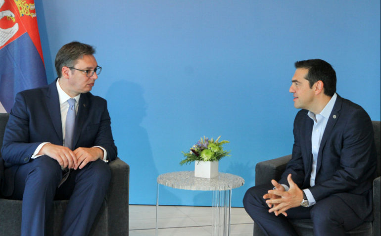 HomeΕΙΔΗΣΕΙΣΣυνάντηση Τσίπρα με τον Σέρβο πρωθυπουργό για διμερείς συμφωνίες ΕΙΔΗΣΕΙΣ Συνάντηση Τσίπρα με τον Σέρβο πρωθυπουργό για διμερείς συμφωνίες Στο Μέγαρο Μουσικής Θεσσαλονίκης, άρχισε η συνάντηση του πρωθυπουργού Αλέξη Τσίπρα με τον Πρόεδρο της Σερβίας Αλεξάνταρ Βούτσιτς. Στον διάλογο που είχε με τον Πρόεδρο της Σερβίας Αλεξάνταρ Βούτσιτς, ενώπιον των τηλεοπτικών συνεργείων, ο Αλέξης Τσίπρας αναφέρθηκε στους ιστορικούς δεσμούς που συνδέουν την Ελλάδα και τη Σερβία. Ο Έλληνας πρωθυπουργός συνεχάρη τον κ. Βούτσιτς για την εκλογή του στη θέση του Προέδρου και επισήμανε ότι η συνάντησή τους είναι το πρώτο βήμα για την προώθηση της διμερούς συνεργασίας για την ασφάλεια και τη σταθερότητα στην περιοχή των Βαλκανίων. Απ’ την πλευρά του, ο πρόεδρος της Σερβίας μίλησε για τις συμφωνίες συνεργασίας που αναμένεται να υπογραφούν μετά το τέλος της συνάντησης. Μετά την ολοκλήρωση των επαφών, θα υπογραφούν διμερείς συμφωνίες και οι κκ Τσίπρας και Βούτσιτς θα δώσουν κοινή συνέντευξη Τύπου γύρω στις 11.30. Αμέσως μετά θα συνεδριάσει το Ανώτατο Συμβούλιο Συνεργασίας Ελλάδας-Σερβίας. Το απόγευμα, ο πρωθυπουργός θα συναντηθεί με τον πρόεδρο της Ευρωπαϊκής Επιτροπής Ζαν Κλοντ Γιούνκερ, πριν την αναγόρευση του τελευταίου σε επίτιμο διδάκτορα του ΑΠΘ. Η τελετή αναγόρευσης του Γιούνκερ θα πραγματοποιηθεί σε αίθουσα του Μεγάρου Μουσικής Θεσσαλονίκης. Share This Previous ArticleΘα χρεώνονται πλέον οι πληρωμές φόρων στα υποκαταστήματα των Τραπεζών Next ArticleΔυνατές μεταγραφές από τον ΠΑΟ στο μπάσκετ 13/07/2017